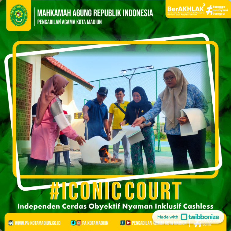 PA Kota Madiun lakukan pemusnahan Blangko Akta Cerai yang sudah tidak dipergunakan pada Jum’at, (7/6/2024). Acara yang bertempat di halaman belakang kantor PA Kota Madiun pukul 10.00 WIB ini dipimpin oleh Panitera PA Kota Madiun Mochammad Mu’ti, S.H., M.H. selaku Ketua tim pelaksanaan pemusnahan Blangko Akta Cerai PA Kota Madiun beserta anggota tim. Turut hadir pula dalam acara ini Wakil Ketua PA Kota Madiun Imam Safi’i, S.H.I., M.H. dan Sekretaris PA Kota Madiun Onis Nur Islahi, S.Sos., M.M.